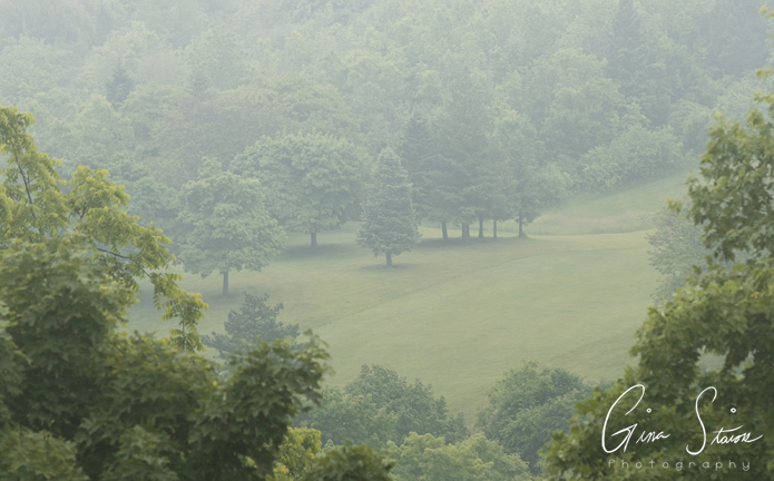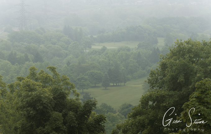 Golden hour sunlight lights up a landscape on a spring evening in Toronto, Ontario, Canada.