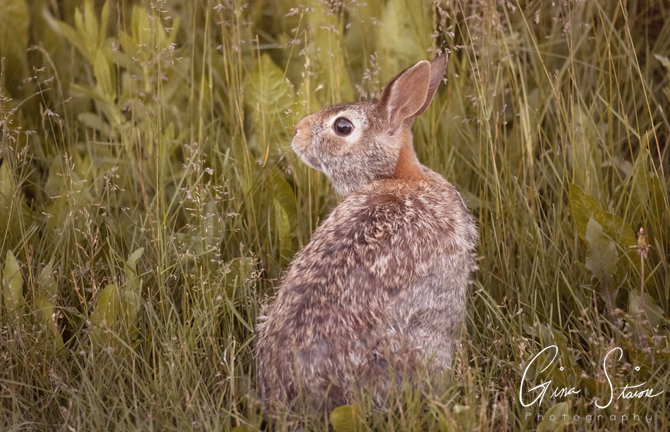 A cute bunny hangs out in the grass on a spring afternoon in Toronto, Ontario, Canada.