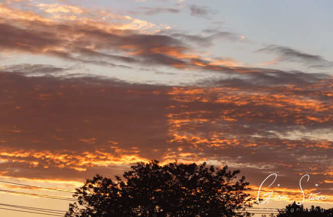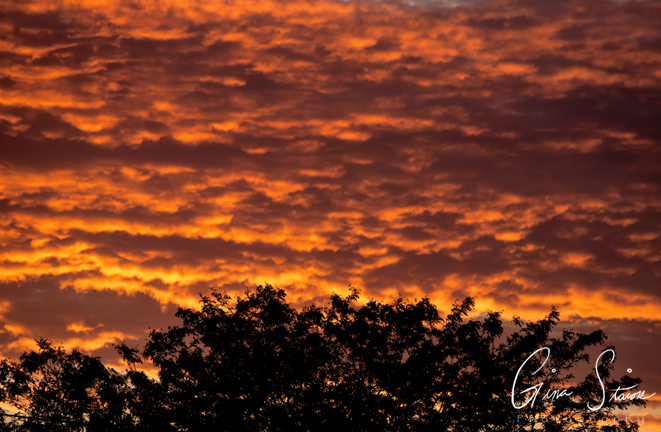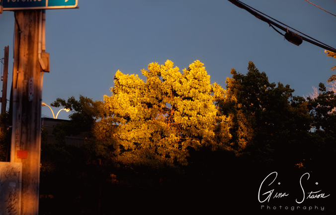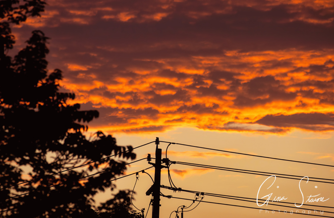A vivid orange sunset lights up the sky on a spring evening in Toronto, Ontario, Canada.