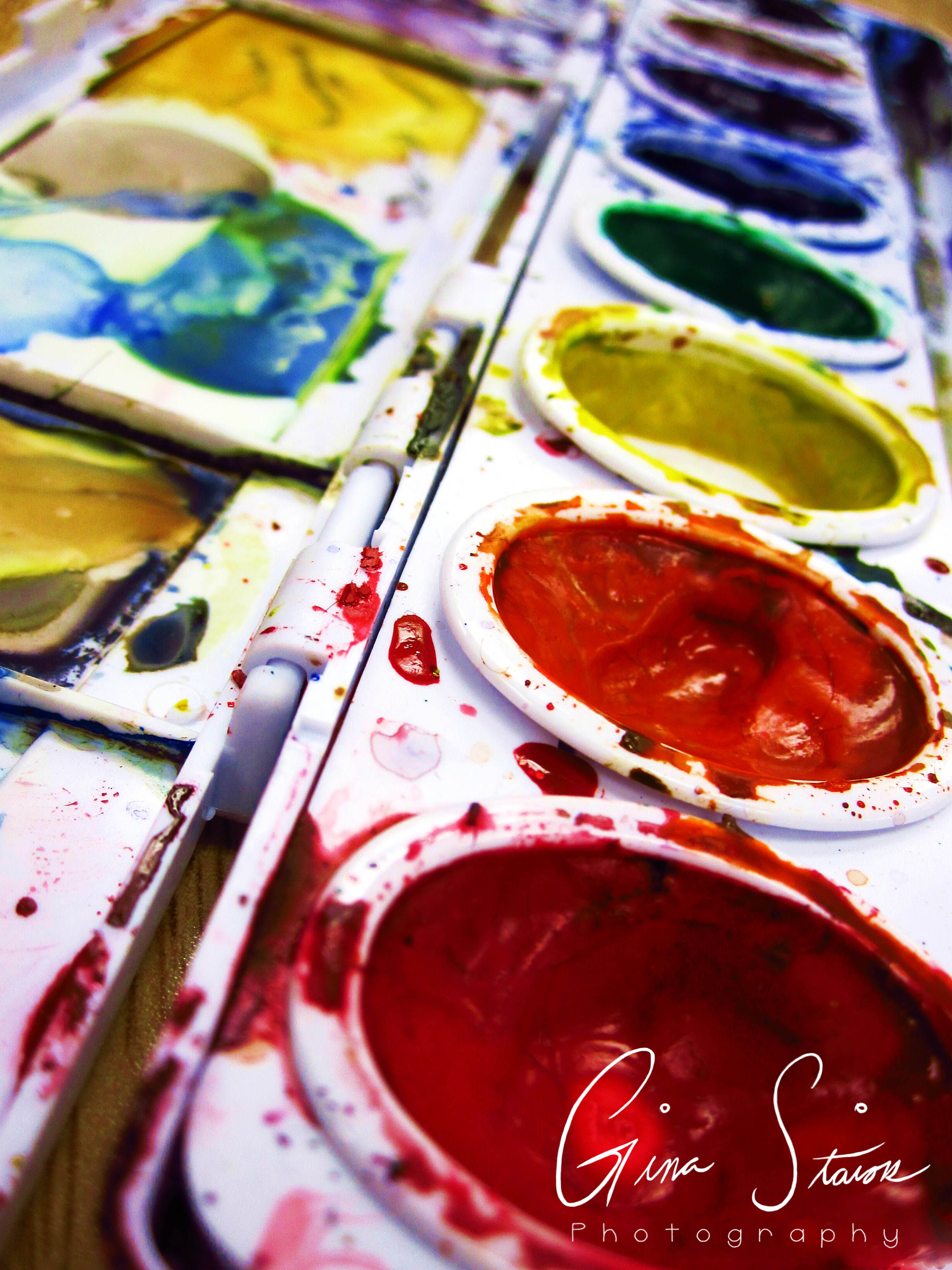 A close up shot of watercolour paints.