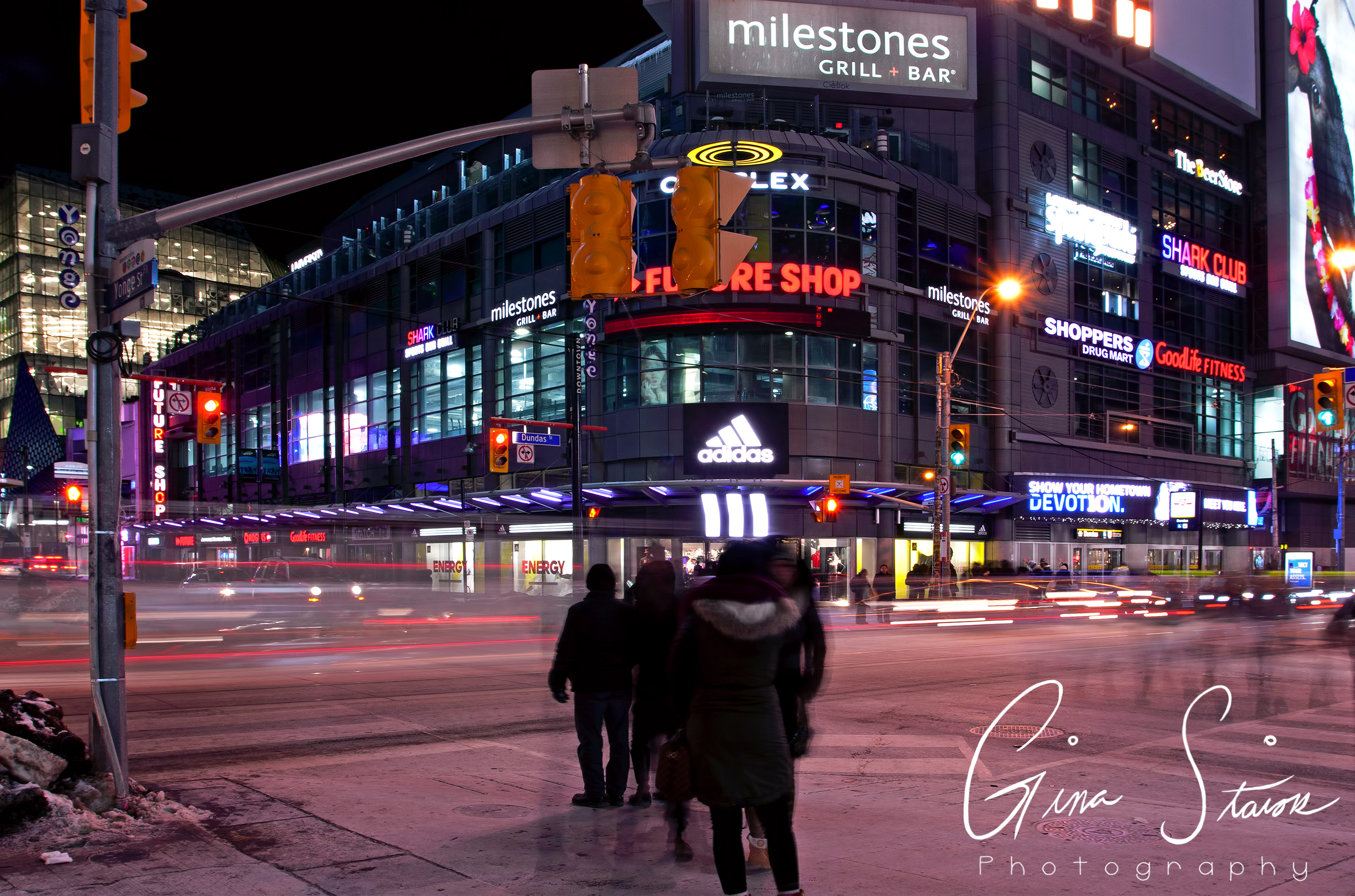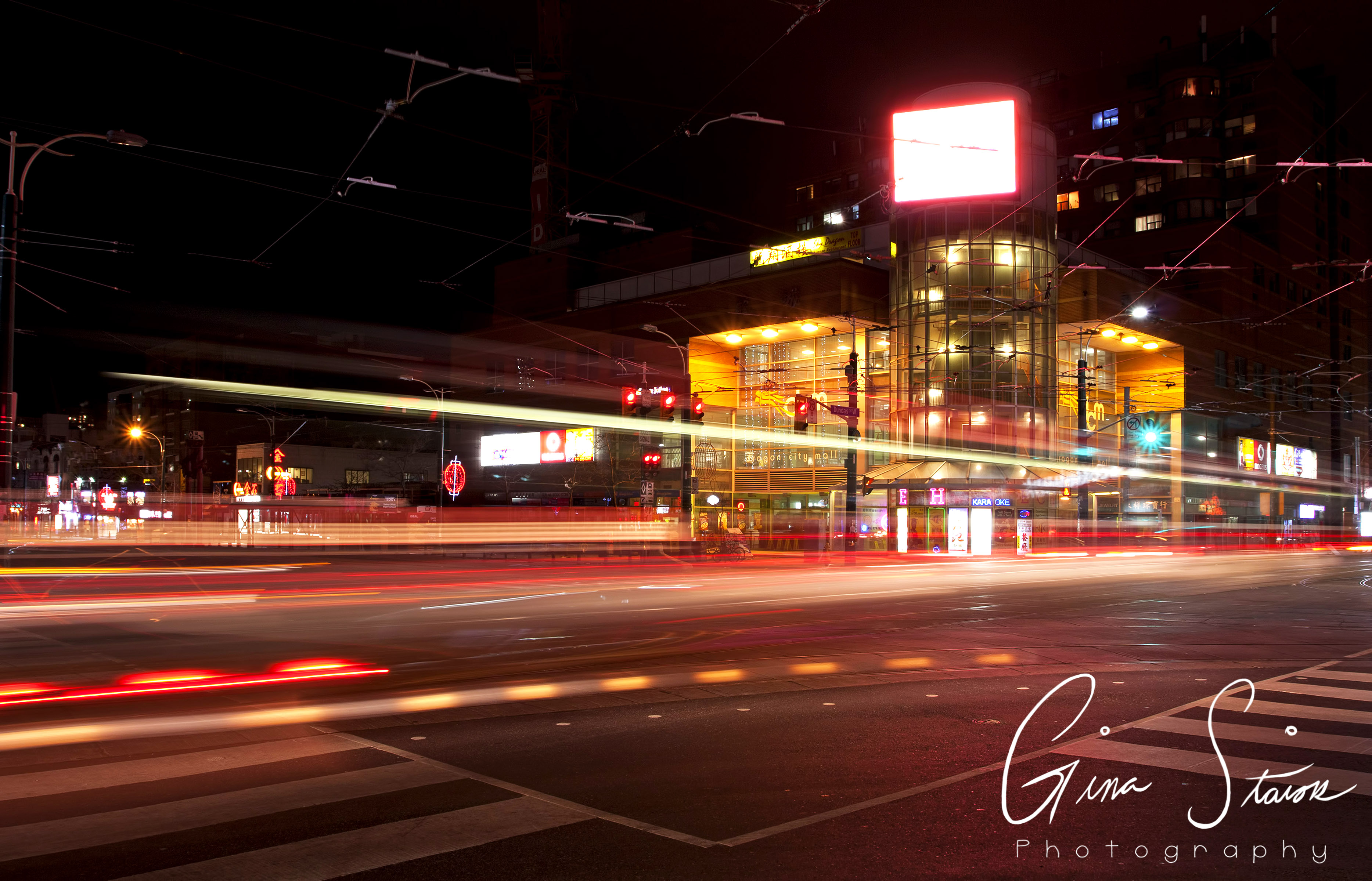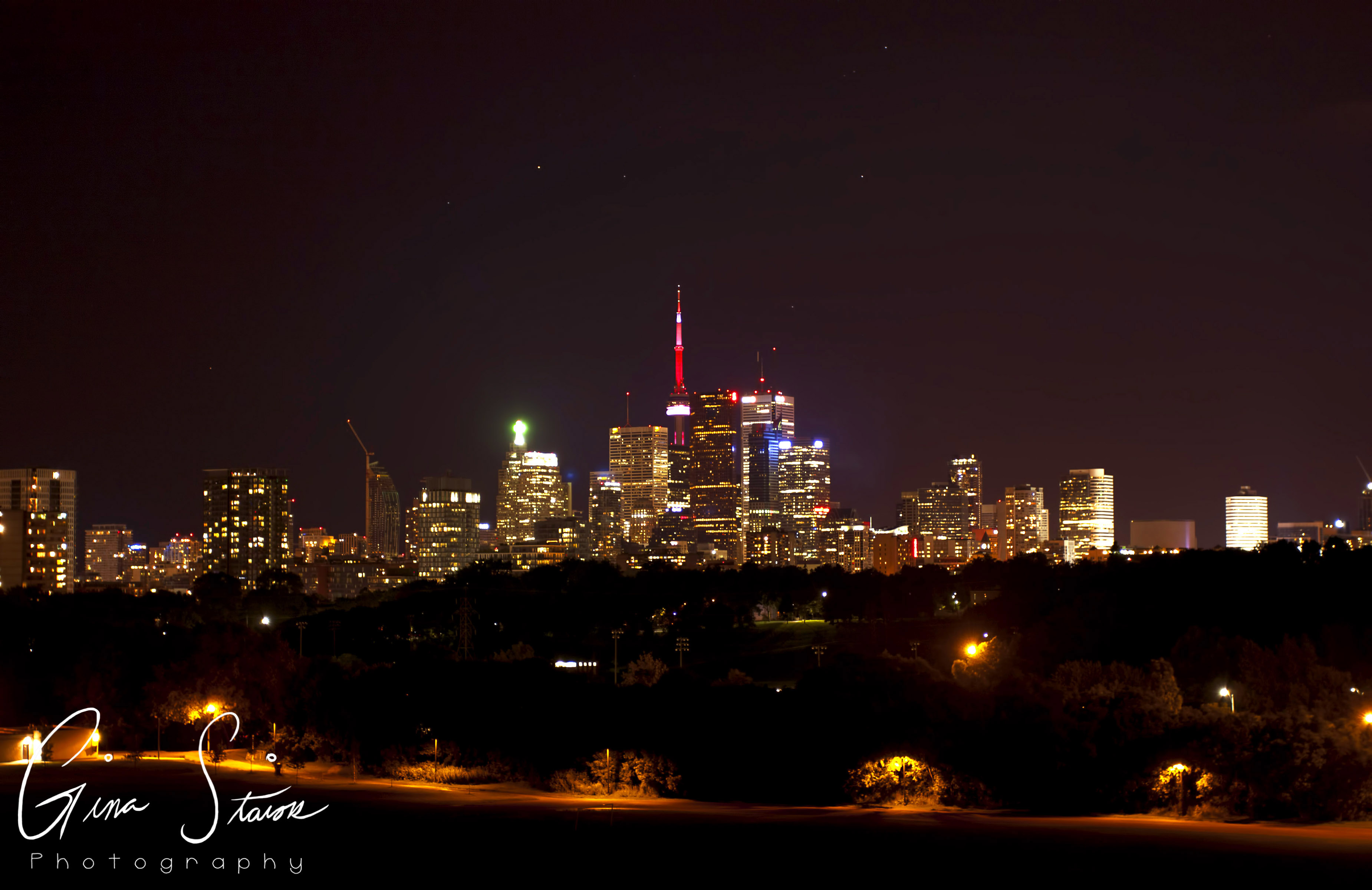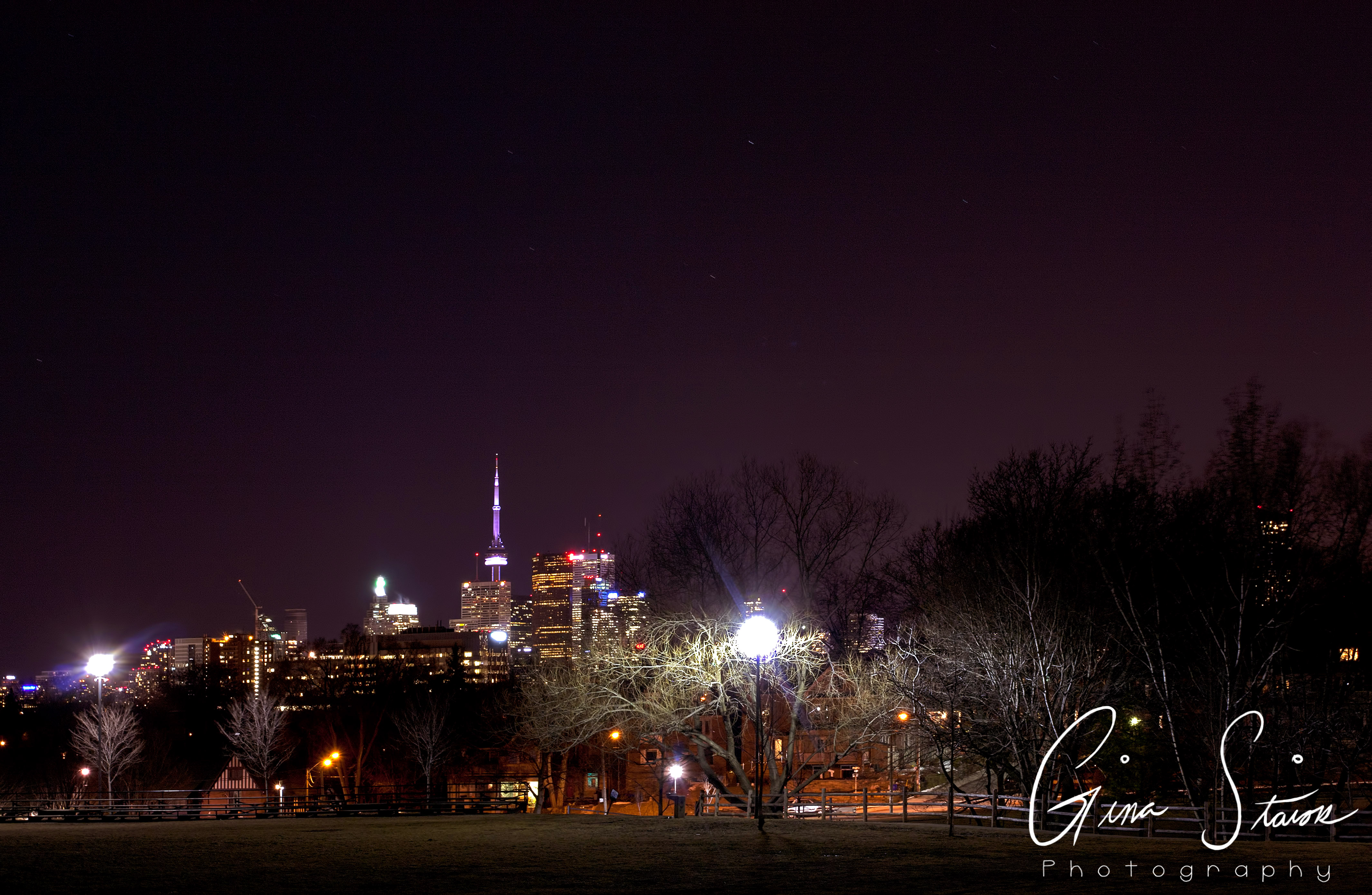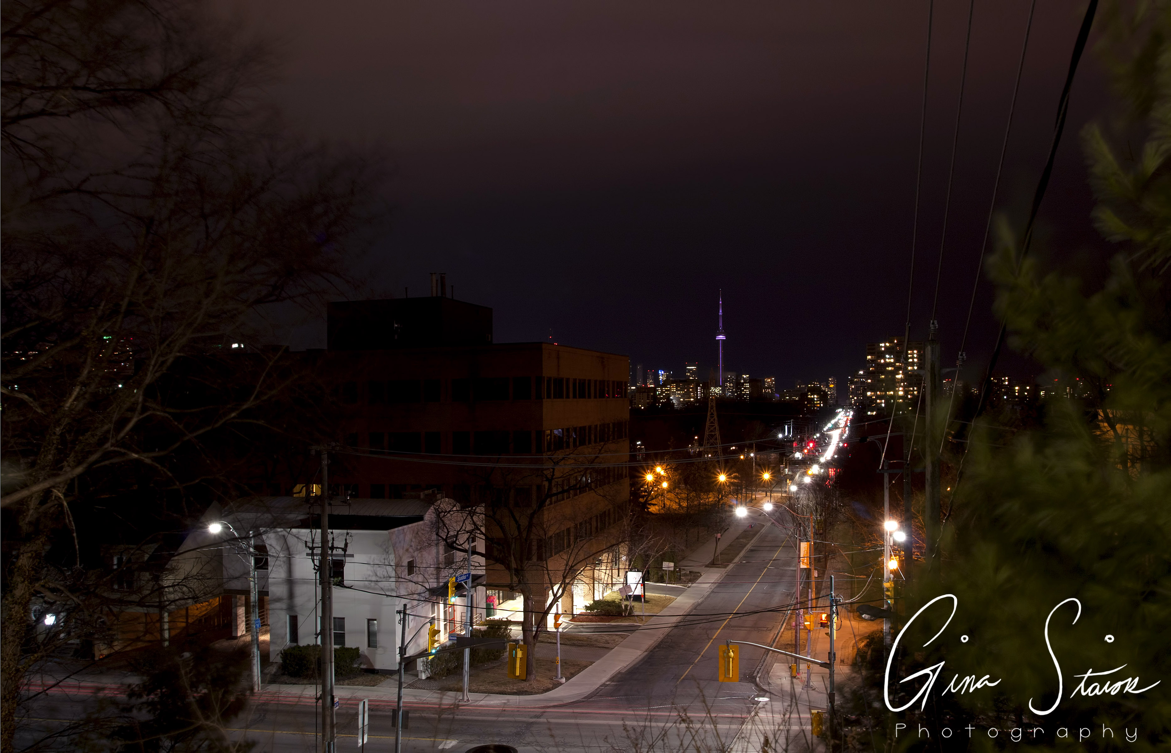 As one of the most notable cities in Canada, Toronto is known for its urban development, congested space, and its skyline. The downtown core is especially known for its overpopulated region. This in turn, leads to a great amount of light pollution in the city. This series aims to show the city light that is contained in Toronto and how this light pollution can be seen from varying distances. This method of mapping out the city reveals the way public space is used and how everyday scenes can reveal a lot more about the area. As a result of the photographs being taken at night, one is also able to see how light is a big aspect of city life.