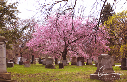 Cherry blossoms are finally blooming! While visiting grandparents at the cemetery, my family noticed that there were several cherry blossom trees littered throughout the area. Strange how I’d never noticed them all these years. Granted, I feel like most Torontonians only see High Park as their cherry blossom central. With things being the way they are this year and last, many of us had to look to other places to get our Sakura fix. I know that personally, I had never looked into other areas in the city with cherry blossoms as I’d always head over to High Park in the past. While it is open to visitors this year (albeit being fenced off), I personally wasn’t about to brave the more than likely huge crowds vying for a chance to take a peek through the fences.