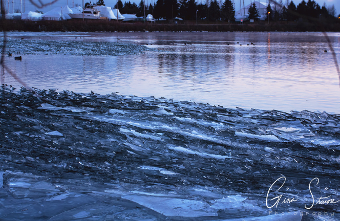 A frozen and icy landscape during a deep freeze in Toronto. It was around -20°C on this evening and it didn’t take long for exposed skin to turn pink. Observing this landscape, I felt so calm and at peace. All I could hear was the gentle lapping of the water in the distance, restless birds, and the sounds of the ice cracking from one side of the shore to the other. I thought it was super interesting how the ice resembled water lapping up the shore. Obviously, this was the way the water froze but the jaggedness of the ice was fascinating to me as other frozen areas of the lake consisted of smooth ice. When we visited after a few “warmer” days, the ice had melted a bit, so I’m very glad I got these shots when I did.