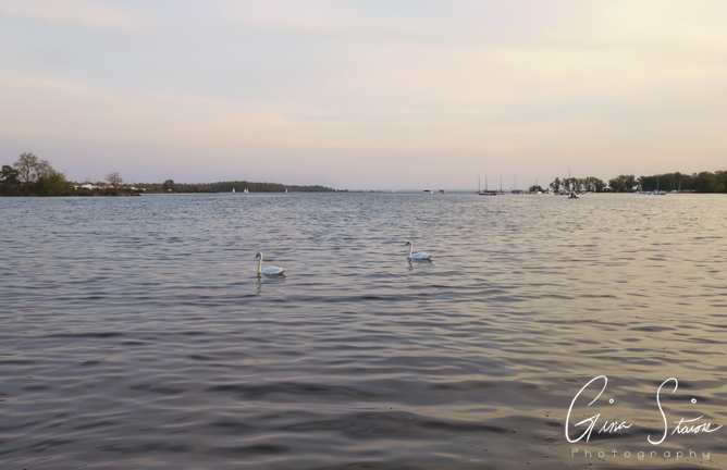 Two juvenile mute swans showed up out of the blue during this calm spring day in Toronto, Ontario, Canada.