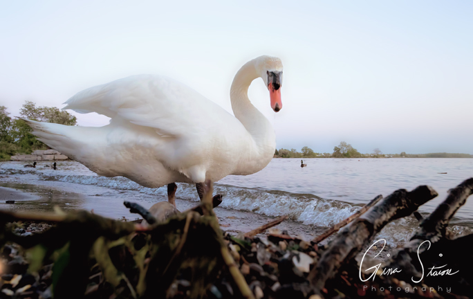 A male mute swan kept me company on this calm evening by the lake during spring in Toronto, Ontario, Canada.
