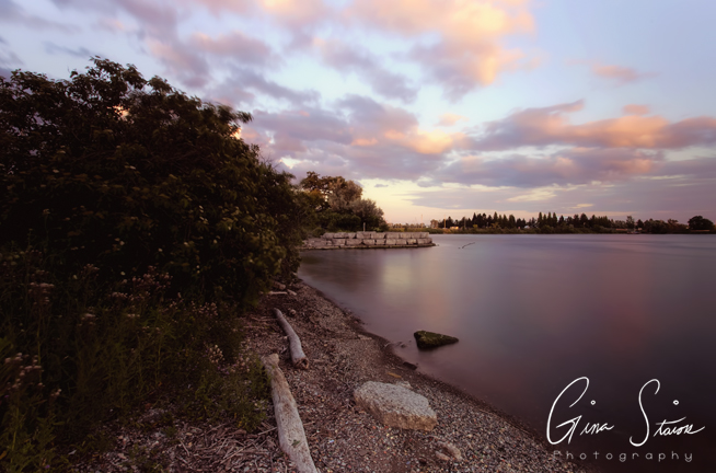 A long exposure photo by the beach during sunset on a summer evening in Toronto, Ontario, Canada.