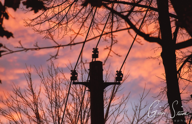 An intense sunset paints the sky shades of red, pink, and orange on a fall evening in Toronto, Ontario, Canada.