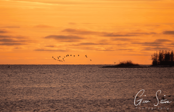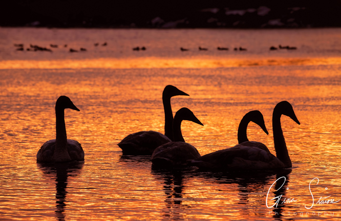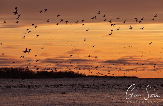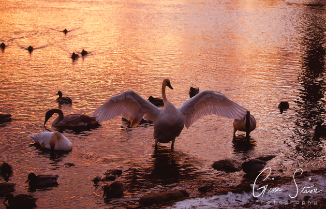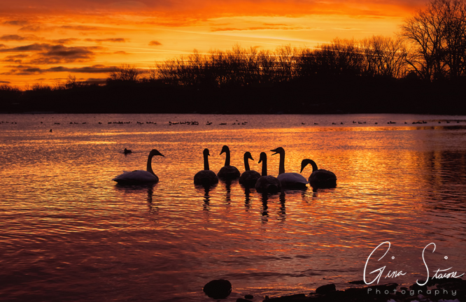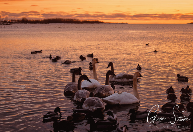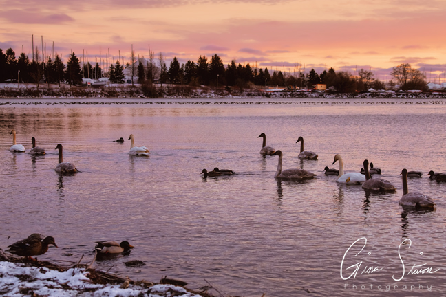 Birds by the lake during one of the best sunsets of the year in Toronto, Ontario, Canada. In the first three photos, something ended up spooking the birds in the distance and they took flight. Combined with the sunset, it felt like a scene out of a movie. I also was able to capture some photos of various trumpeter swan families swimming around with a beautiful sky as a backdrop.