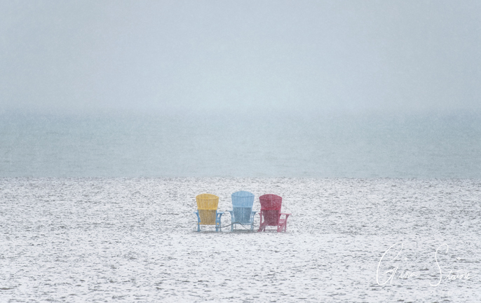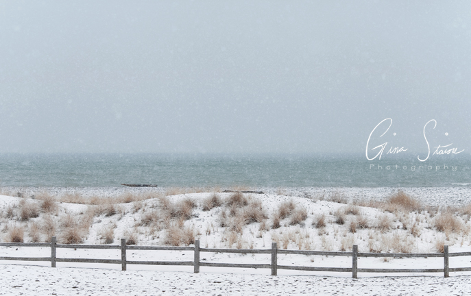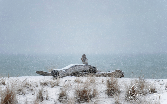 Snow falls on the beach around Ashbridges Bay during a winter afternoon in Toronto, Ontario, Canada.