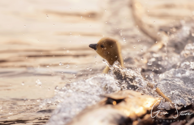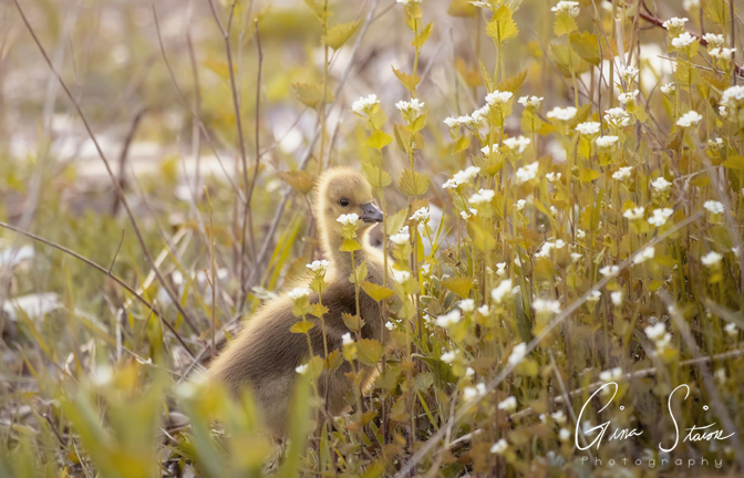 Young Canada geese goslings by the lake during a sunny spring afternoon in Toronto, Ontario, Canada.