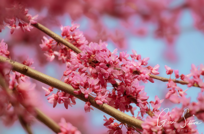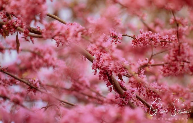 Pink eastern redbuds in full bloom during a spring afternoon in Toronto, Ontario, Canada.