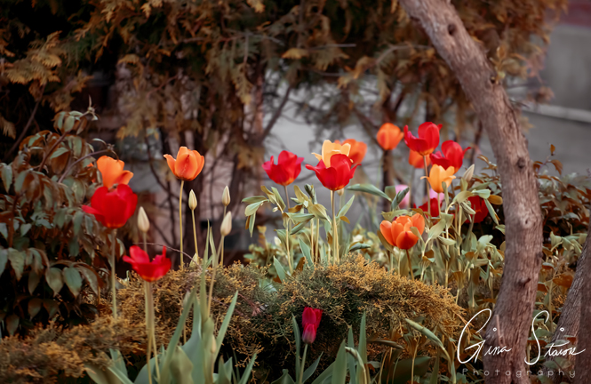 Beautiful red and orange tulips in bloom during a spring afternoon in Toronto, Ontario, Canada.