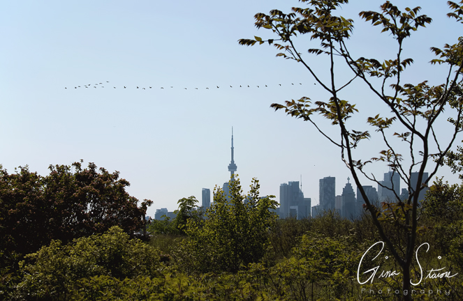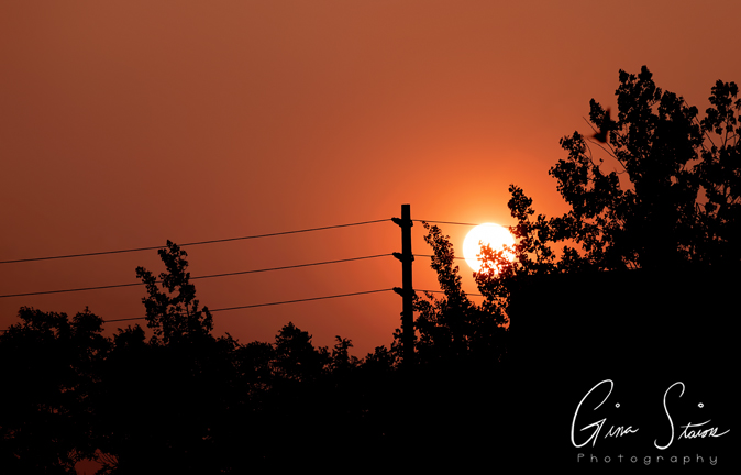 Wildfires in the country result in hazy and smoky skies and orange sunsets. Taken on a spring evening in Toronto, Ontario, Canada.