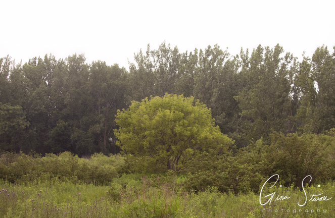 A hazy landscape filled with trees on a cloudy summer day in Toronto, Ontario, Canada.