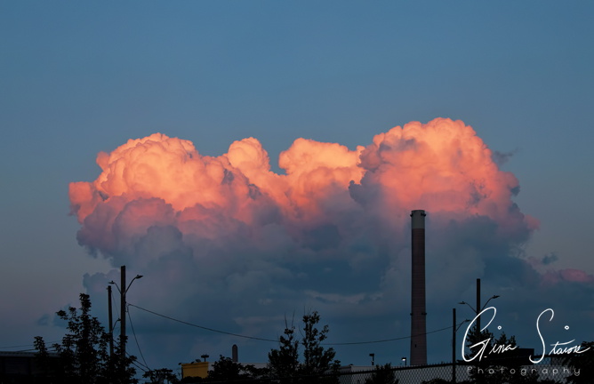 Unreal looking fluffy orange clouds during sunset on a peaceful summer evening in Toronto, Ontario, Canada.