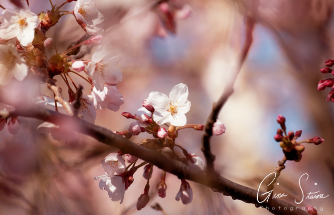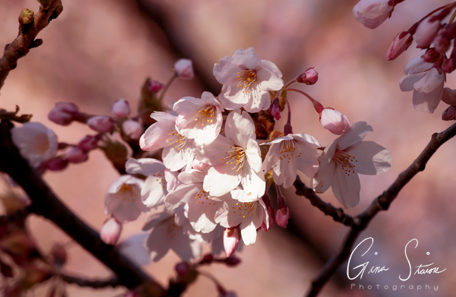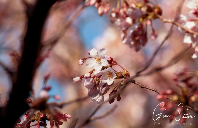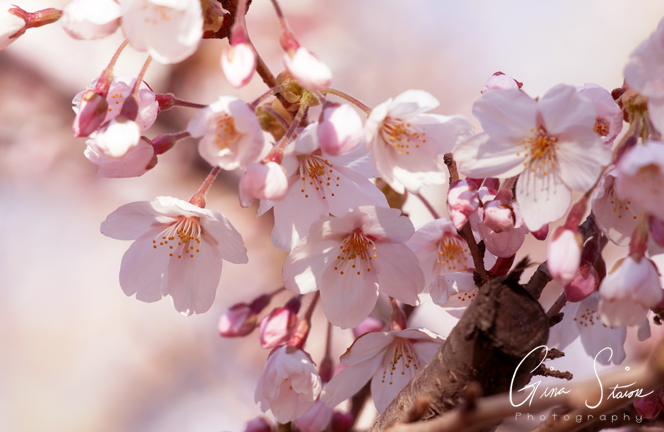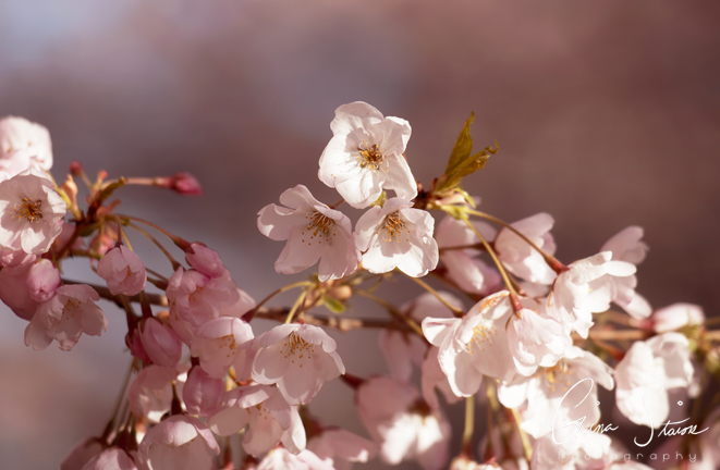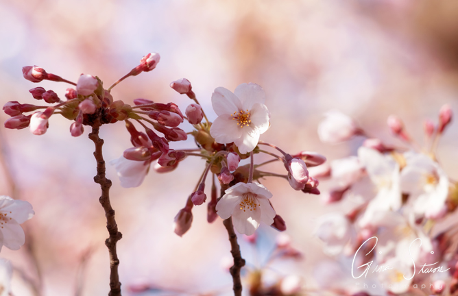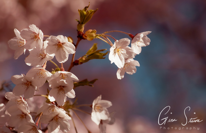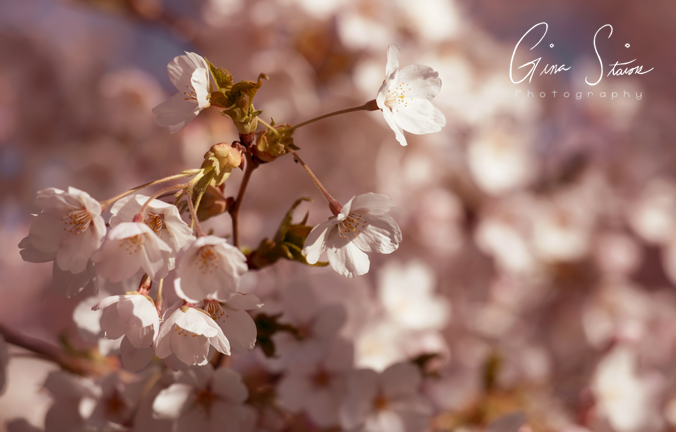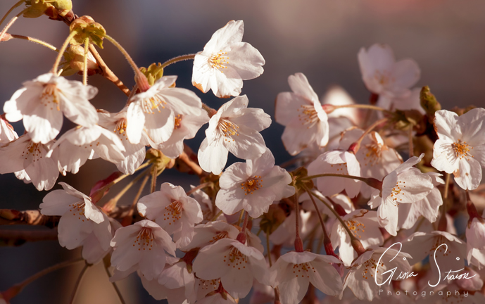 Cherry blossoms illuminated by sunlight on a warm spring afternoon in Toronto, Ontario, Canada.