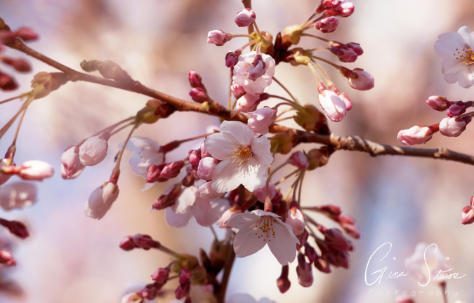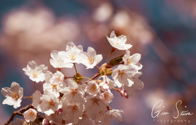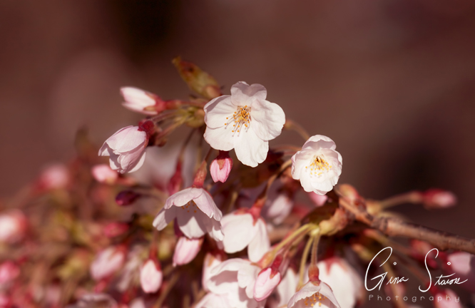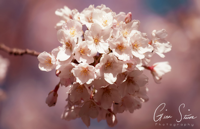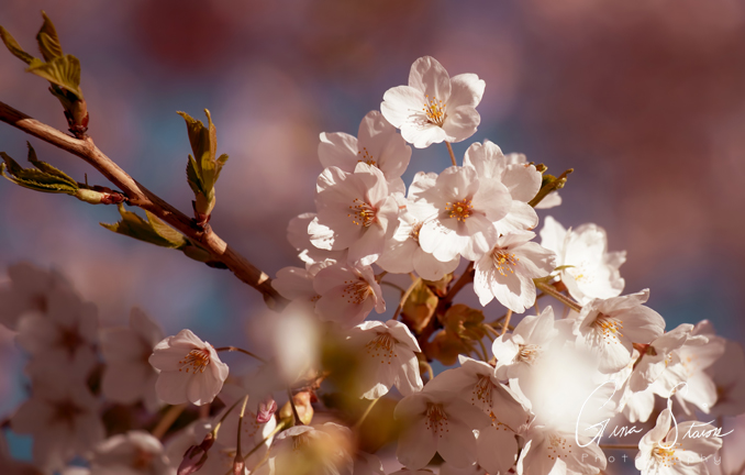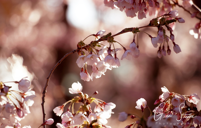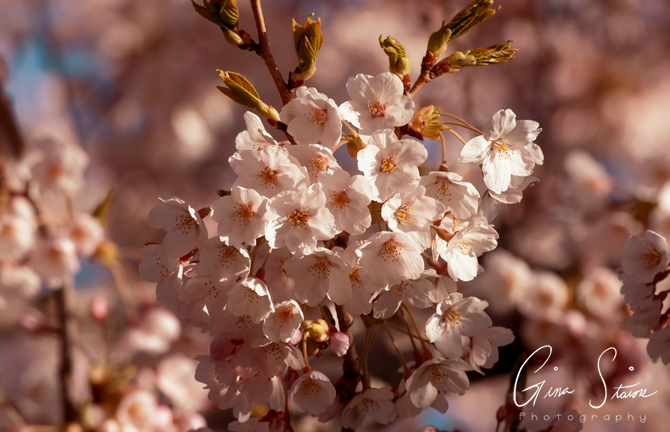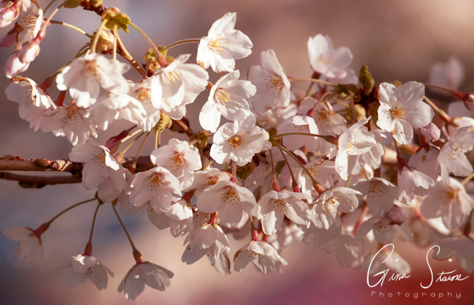 Cherry blossoms illuminated by sunlight on a warm spring afternoon in Toronto, Ontario, Canada.
