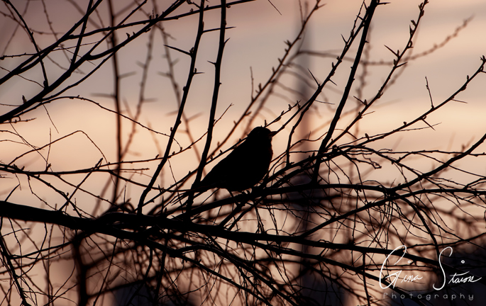 A Baltimore oriole, a white-crowned sparrow, and an unknown bird in shadow on a spring day in Toronto, Ontario, Canada.