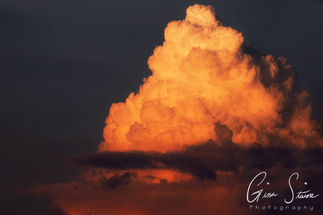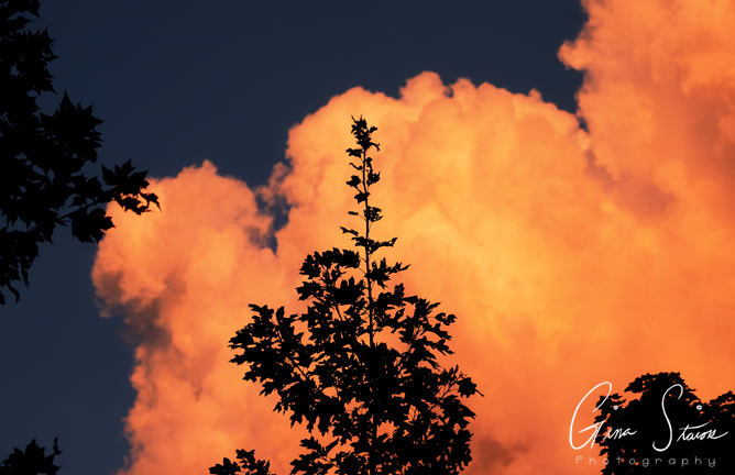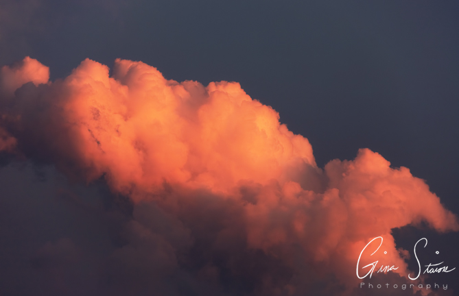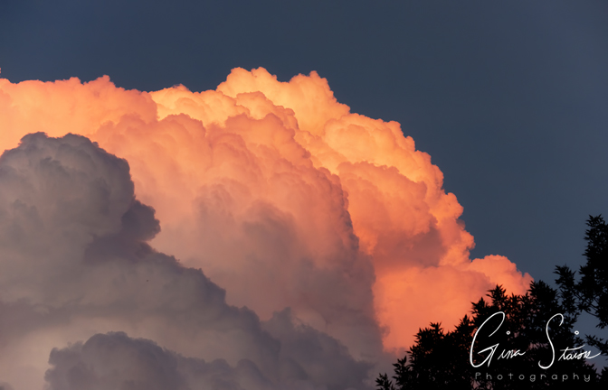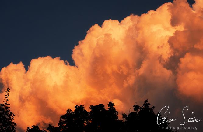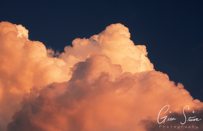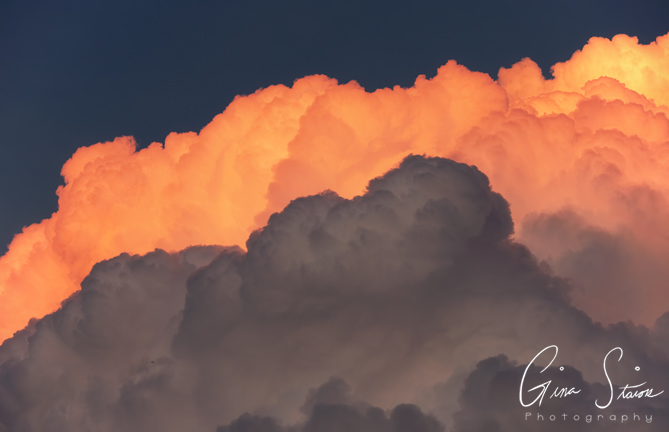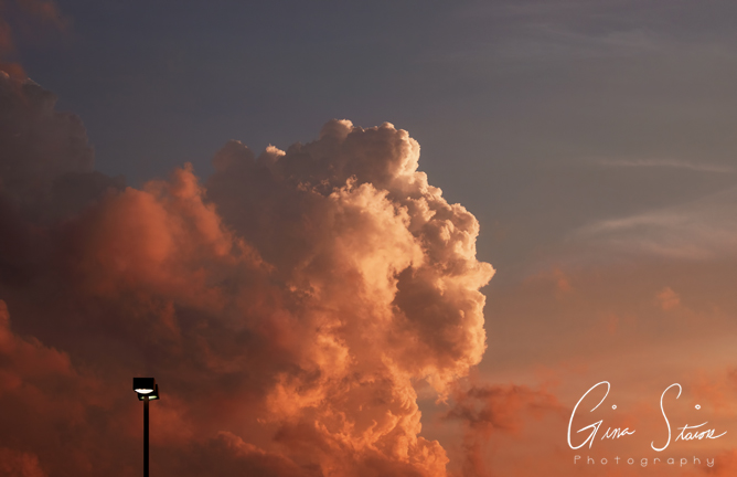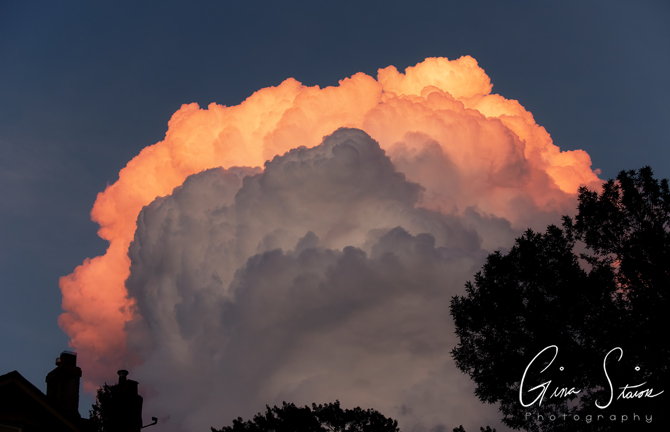Beautiful cumulonimbus clouds illuminated by sunlight during sunset on a summer evening in Toronto, Ontario, Canada.