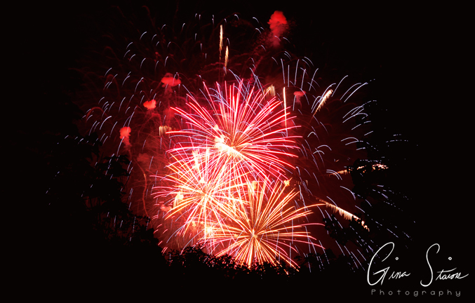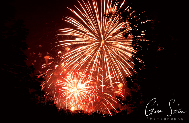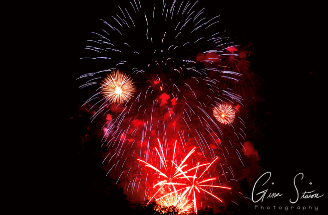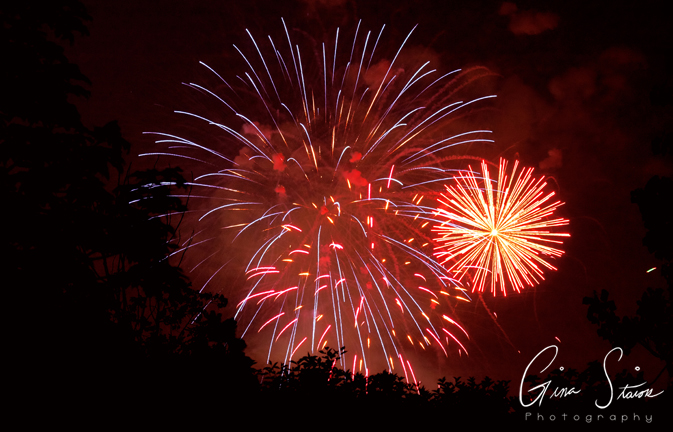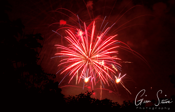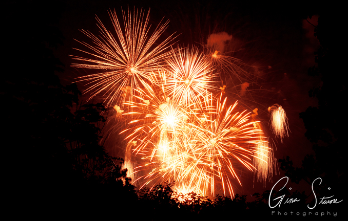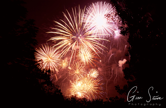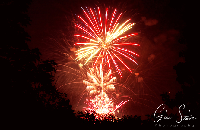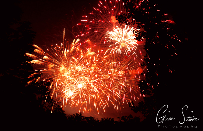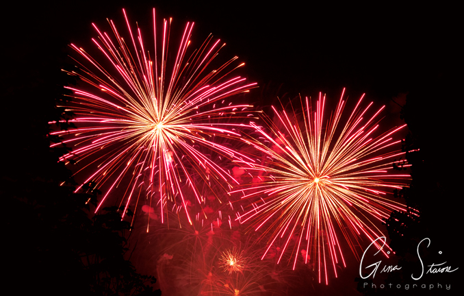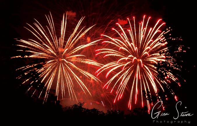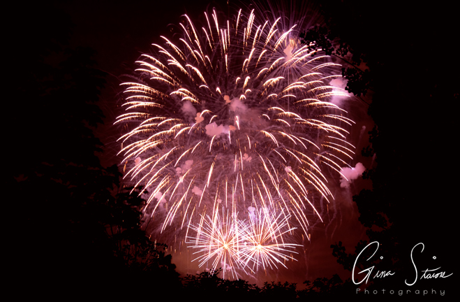 Fireworks celebrating Canada Day on a summer night in Toronto, Ontario, Canada.