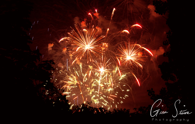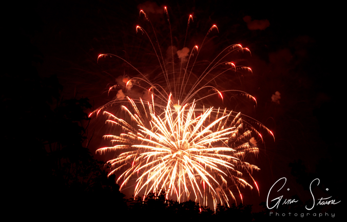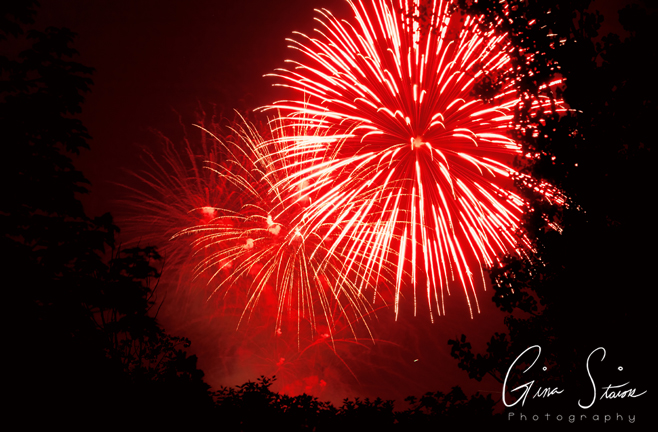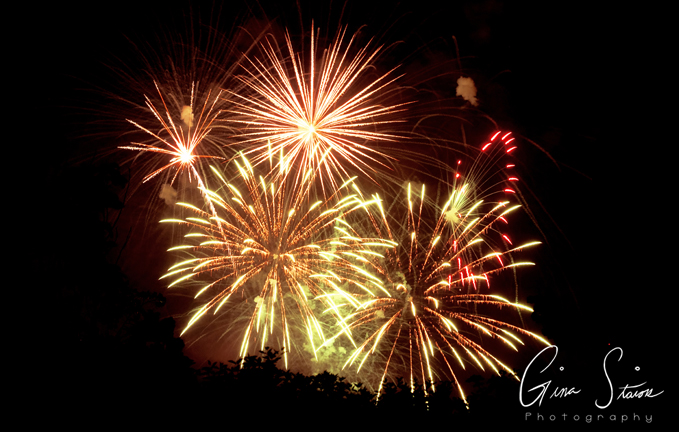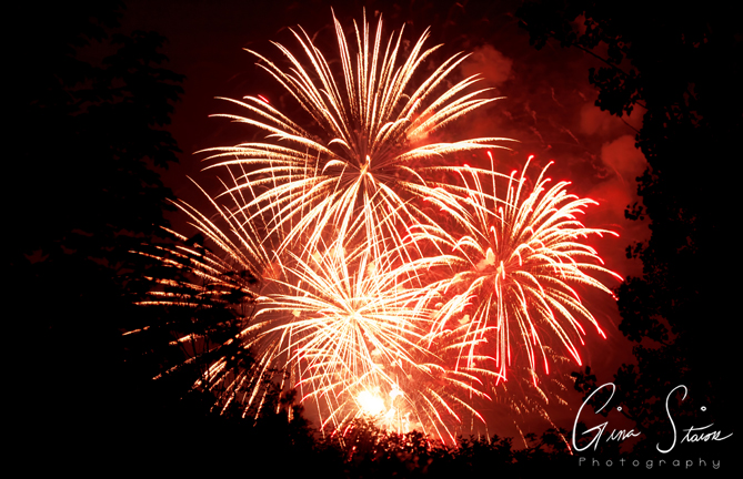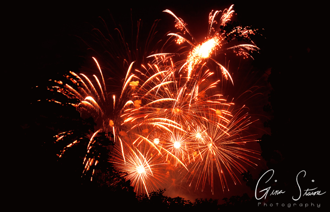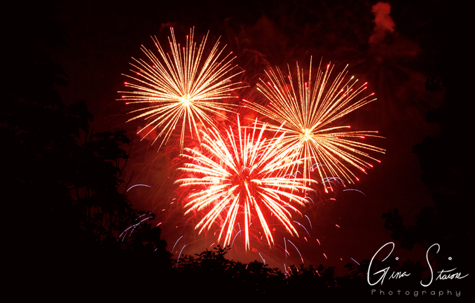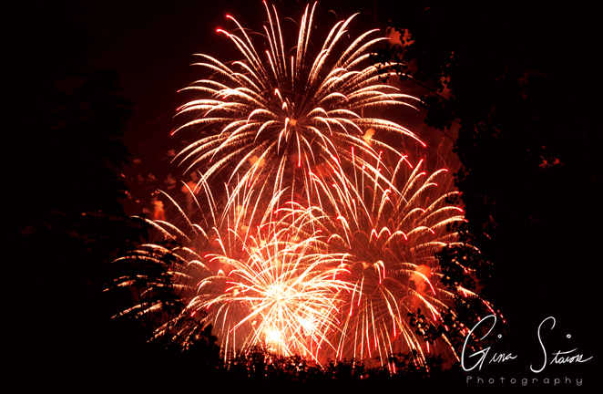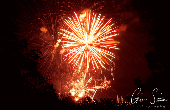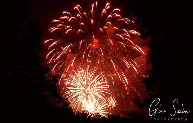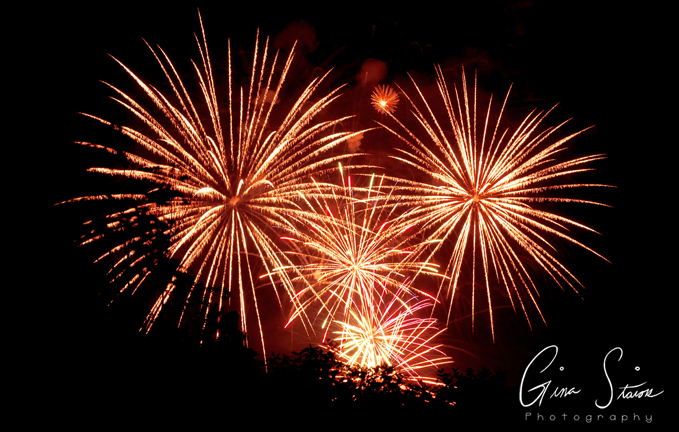 Fireworks celebrating Canada Day on a summer night in Toronto, Ontario, Canada.