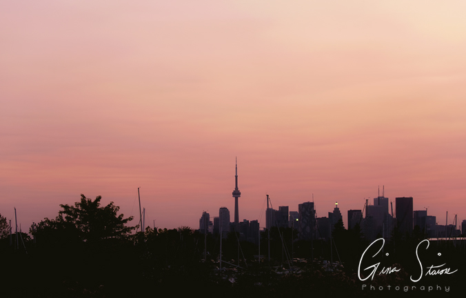 A soft orange sunset above the city’s skyline on a summer evening in Toronto, Ontario, Canada.