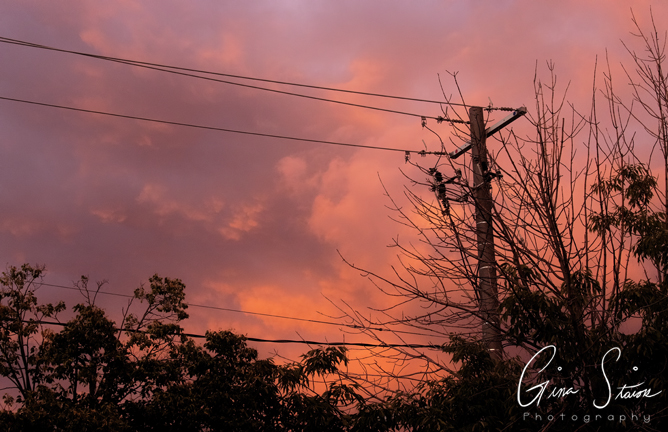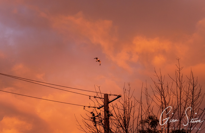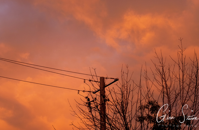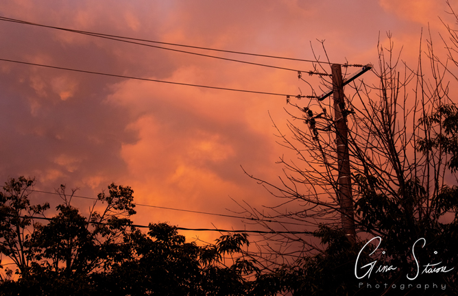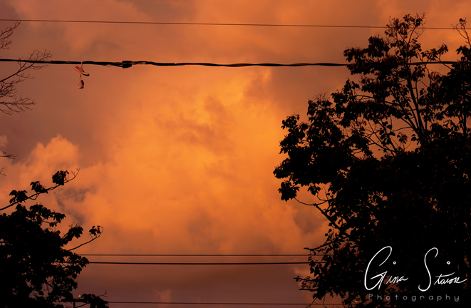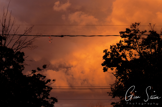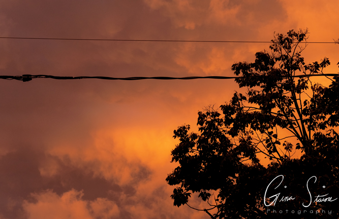 A vibrant orange sunset fills the sky on a summer evening in Toronto, Ontario, Canada.