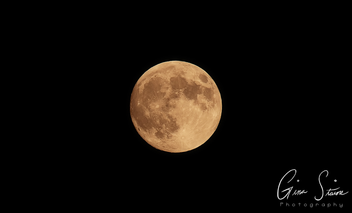 October’s full moon against a dark sky in Toronto, Ontario, Canada.