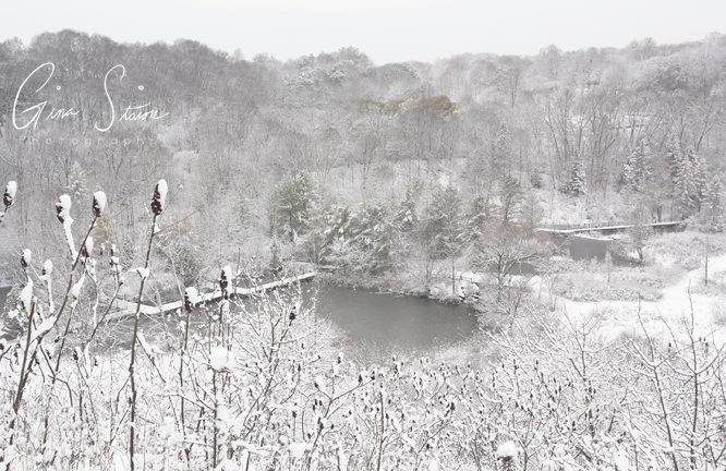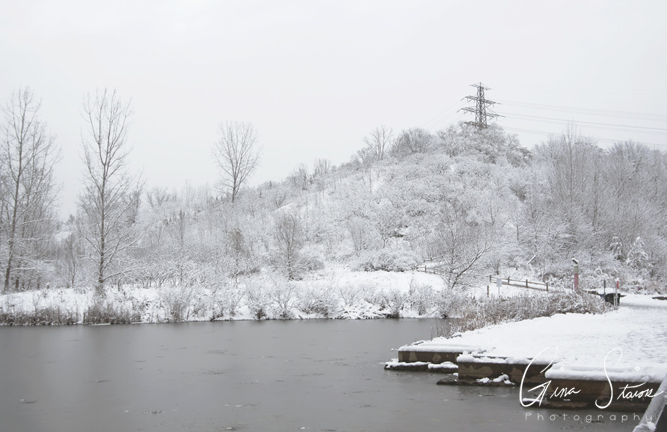 Lately, many places in Toronto have frozen due to the crazy cold weather. The pond at Brickworks is one of those places. The ice was visible in some parts but due to the snowfall the day before, the pond was mostly covered in snow. It was such a beautiful scene and one that’s strikingly different, even in winter.