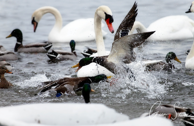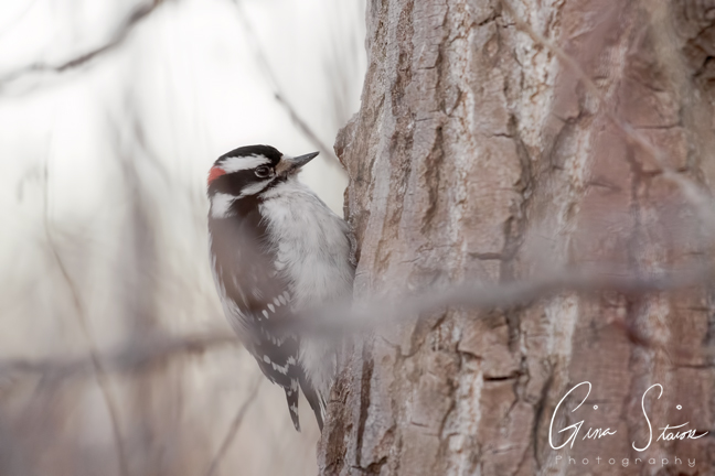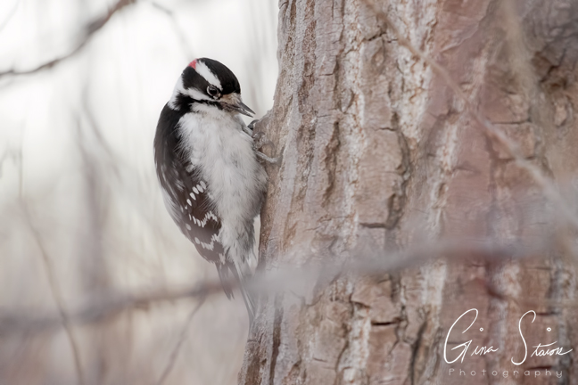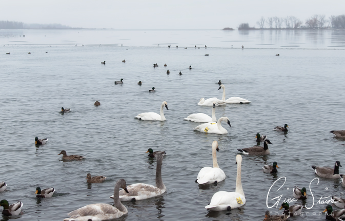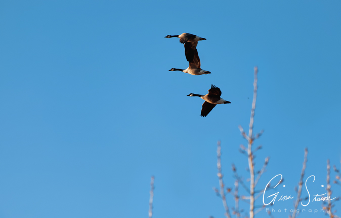 Canada geese, black-capped chickadees, an American tree sparrow, and a downy woodpecker on a peaceful winter afternoon in Toronto, Ontario, Canada.