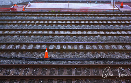 Some simple shots of two industrial-like scenes. I liked the horizontal lines of the train tracks and the vertical lines of the columns illuminated by the golden sunlight.