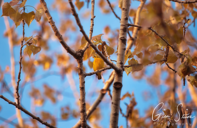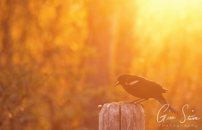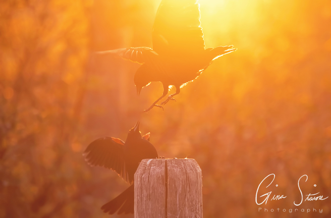 Northern cardinals, yellow warblers, American robins, and red-winged blackbirds out and about during golden hour on a peaceful spring evening in Toronto, Ontario, Canada.