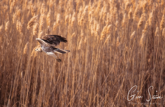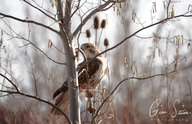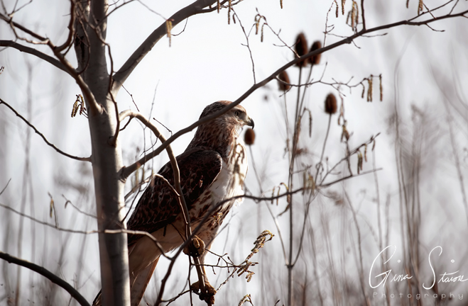 A red-tailed hawk in Tommy Thompson Park on a spring afternoon in Toronto, Ontario, Canada.