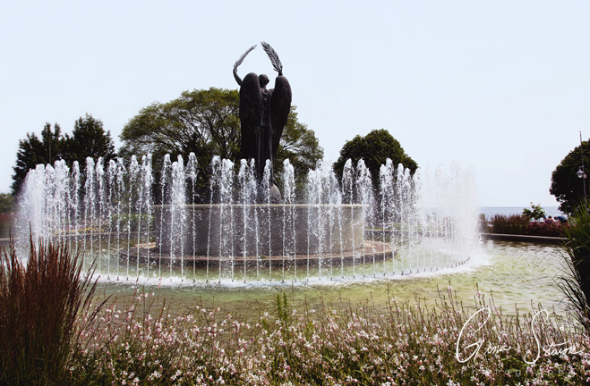 I really liked how sunlight was bouncing off the green grass and leaves in this scene. It was such a quintessential summer landscape that I had to take a photo. I framed the two empty chairs in the distance between the two trees as I thought it was visually appealing. I love using scenes in nature to frame my subject whenever I have the opportunity to do so.