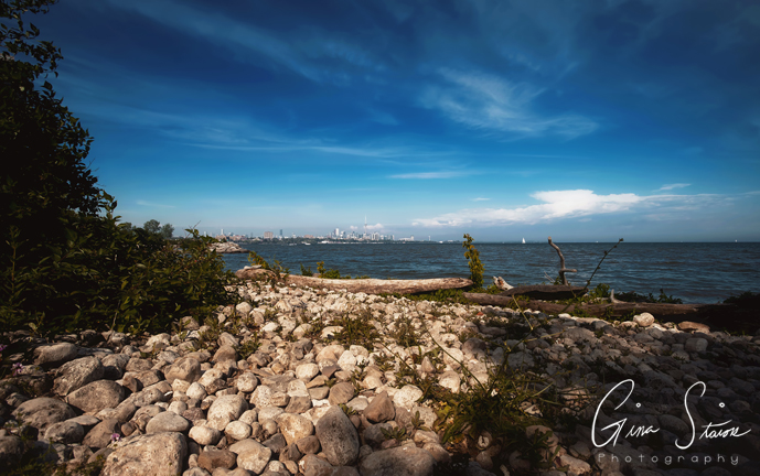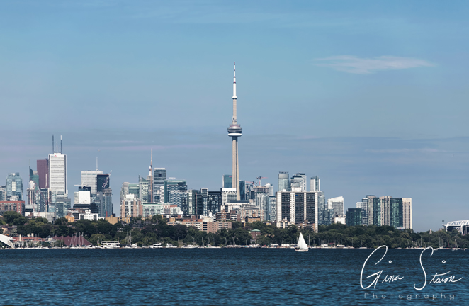 A view of the city’s skyline by the lake on a clear summer afternoon in Toronto, Ontario, Canada.