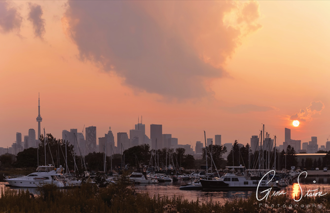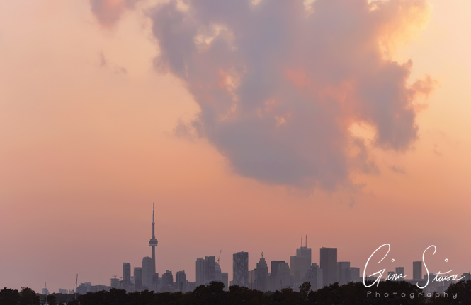 Smoke from nearby wildfires fill the skies on a summer afternoon in Toronto, Ontario, Canada. June 28th, 2023 marks the day that Toronto had the worst air quality in the world. The smell of smoke permeated the air and made breathing and even blinking at times very difficult.