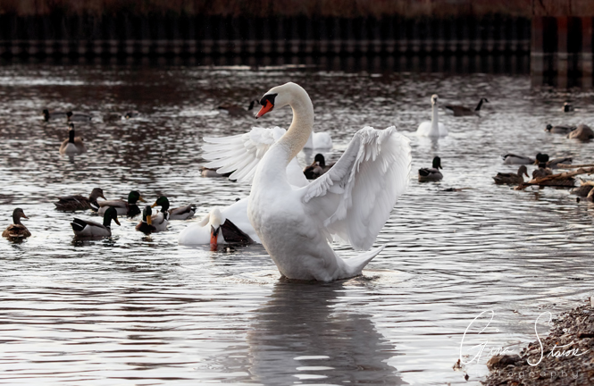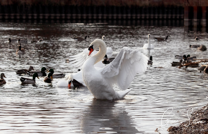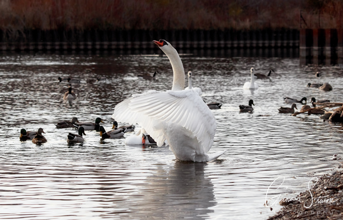 Canada geese, black-capped chickadees, an American tree sparrow, and a downy woodpecker on a peaceful winter afternoon in Toronto, Ontario, Canada.