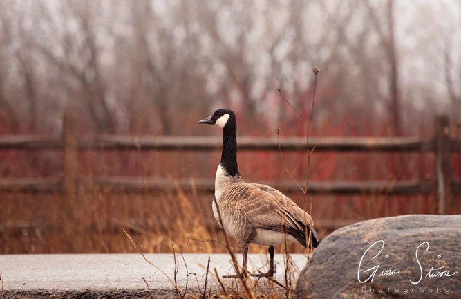 Various waterfowl spend a cloudy winter afternoon by the lake in Toronto, Ontario, Canada.