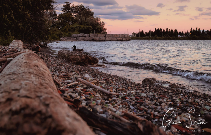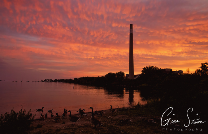 A peaceful sunset at the lake as seen from a both a high and low angle during a spring evening in Toronto, Ontario, Canada.