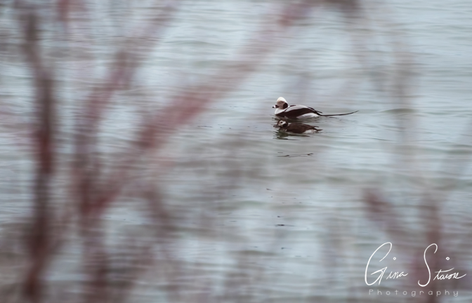A female long-tailed duck swims gracefully during a sunny afternoon in Toronto, Ontario, Canada.