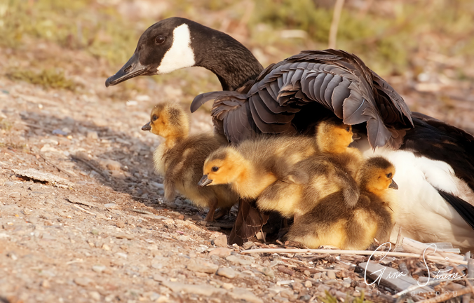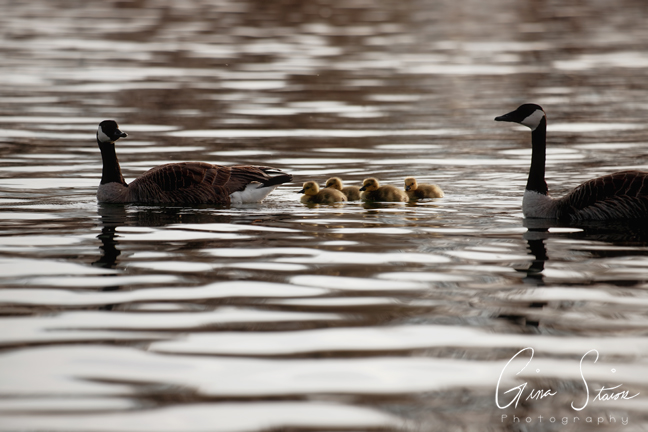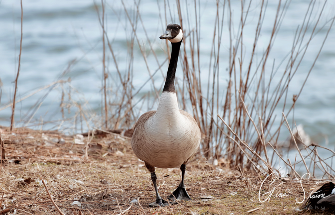 Canada geese, black-capped chickadees, an American tree sparrow, and a downy woodpecker on a peaceful winter afternoon in Toronto, Ontario, Canada.