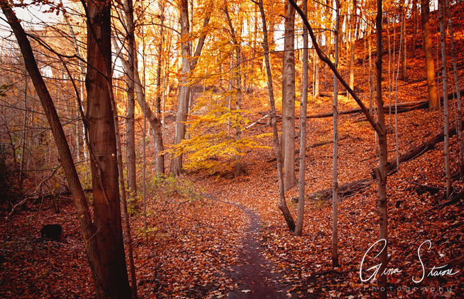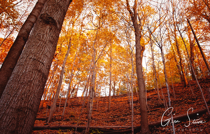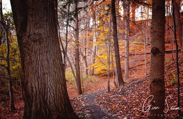 We decided to go to a local park for some fresh air and on the off chance that we would be able to spot some autumn foliage. I brought my camera just in case even though I honestly thought I wasn’t going to see anything noteworthy. Wow, was I ever wrong. Many of the trees had already shed their leaves but that meant that the ground was covered in beautiful shades of reds and oranges while the remaining leaves and branches were bathed in warm, golden hour light.