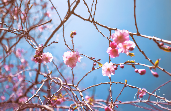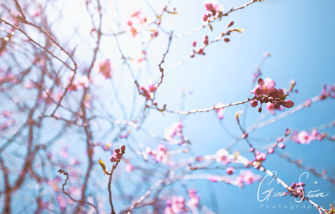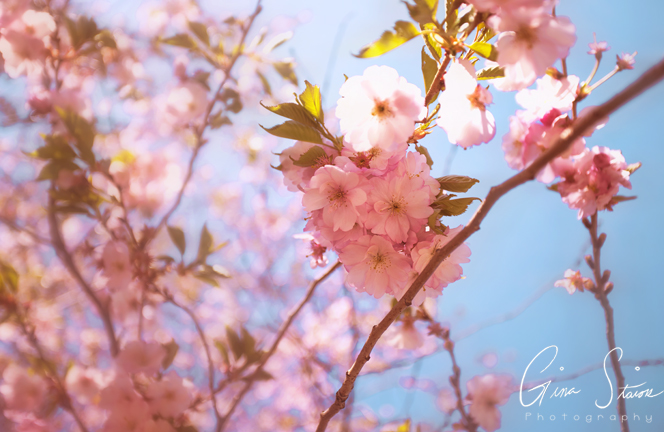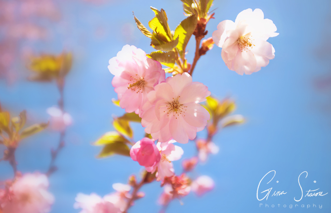Beautiful cherry blossoms against a clear blue sky. The bright sunlight shining through the delicate petals paired with the blue sky really made quite a scene.