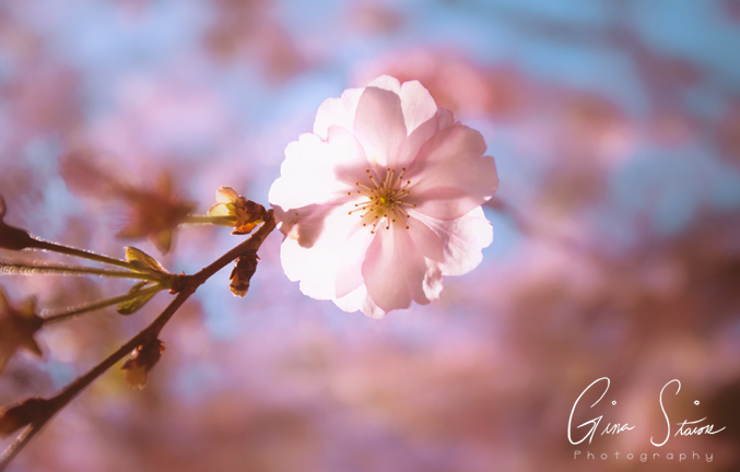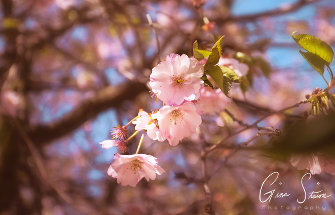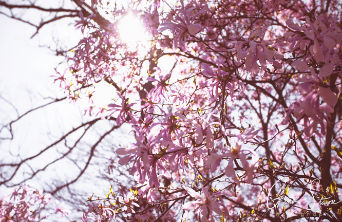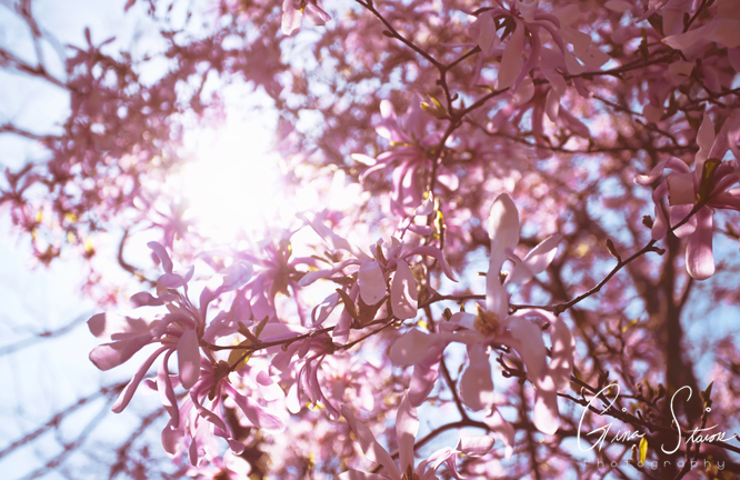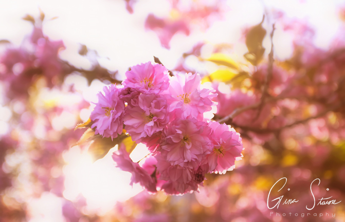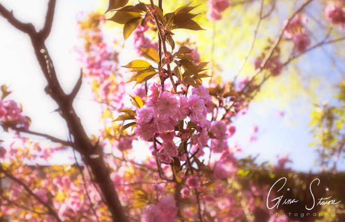 Pink blossoms blooming in the golden afternoon light during spring in Toronto, Ontario, Canada.