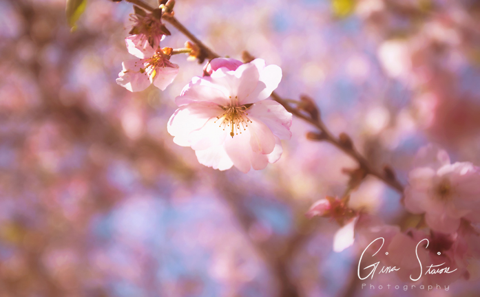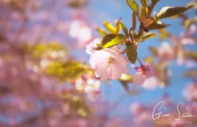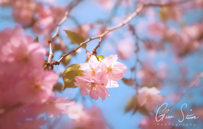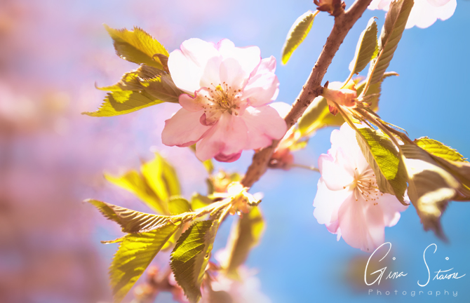 Beautiful cherry blossoms against a clear blue sky. The bright sunlight shining through the delicate petals paired with the blue sky really made quite a scene.