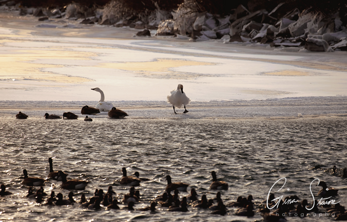 Illuminated by golden hour and the setting sun, these peaceful waterscapes had no shortage of swans and beautiful scenery during a quiet evening in Toronto, Ontario, Canada.