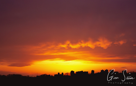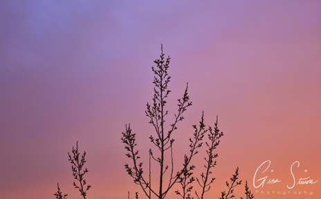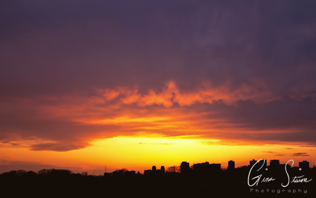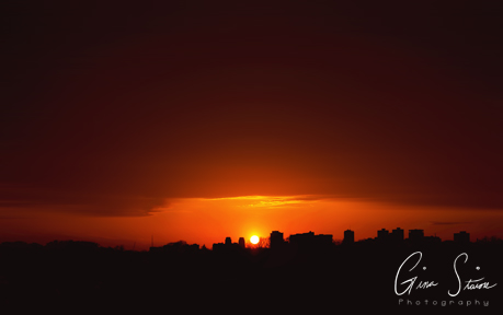 A vivid hazy sunset leads to the sun’s shape being fully visible in the sky. The cloud formations that came next were super pretty and I couldn’t resist taking a shot of the tree branches against the pretty sky!