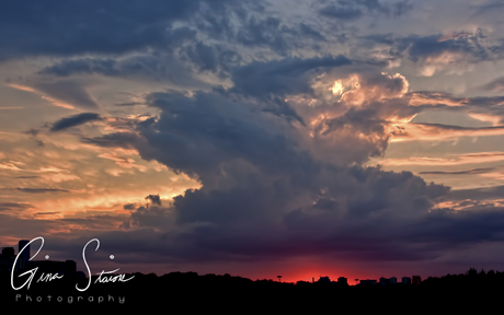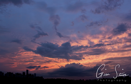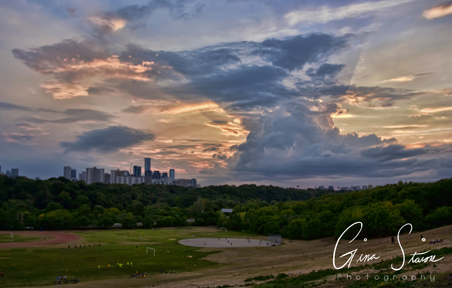 Pretty orange clouds behind the Toronto skyline at Riverdale Park.
