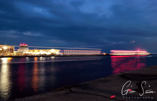 Long exposure photos taken by the waterfront during a cloudy summer evening in Toronto, Ontario, Canada. Boats sailing by create interesting light trails atop the water.