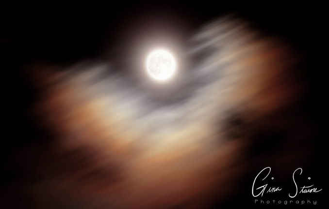 A full moon in a clear night sky in Toronto, Ontario, Canada. The second photo was purely a happy accident. The clouds passing by the moon caused a halo of colour around it that was absolutely beautiful. In my rush to capture the photo before the clouds fully passed by, I didn’t adjust my camera settings well enough and ended up photographing a long exposure instead. When I saw the shot on the viewfinder, I was stunned at how ethereal it looked.